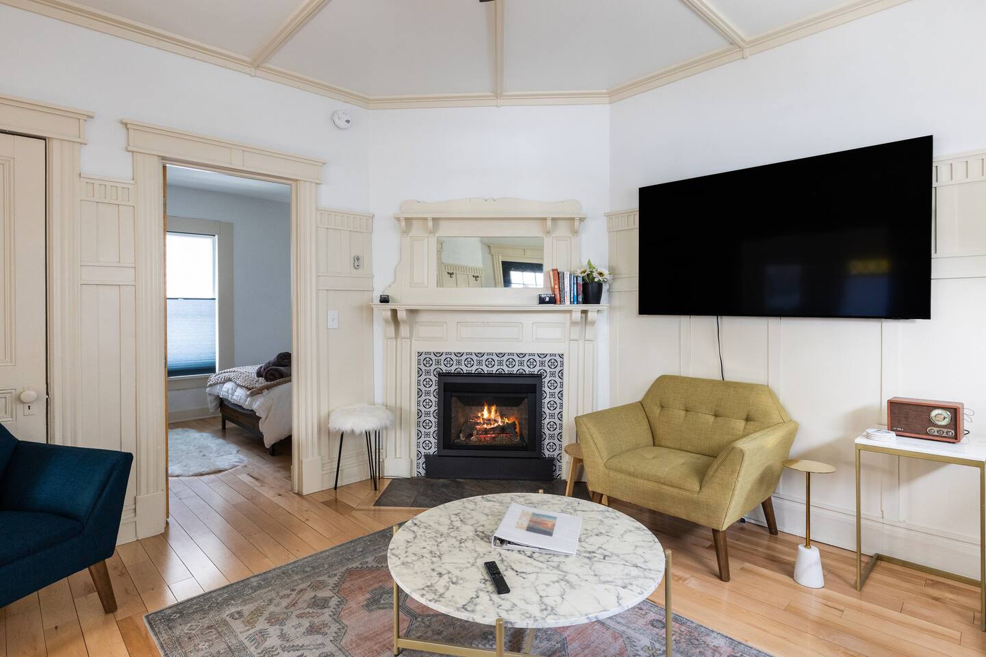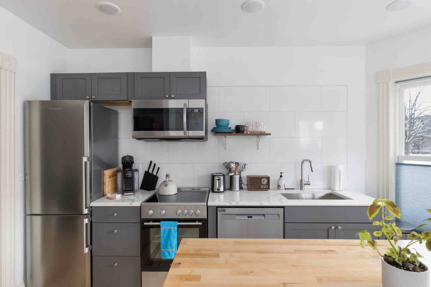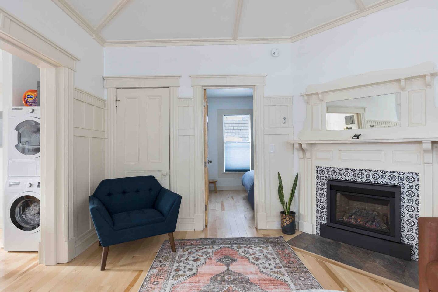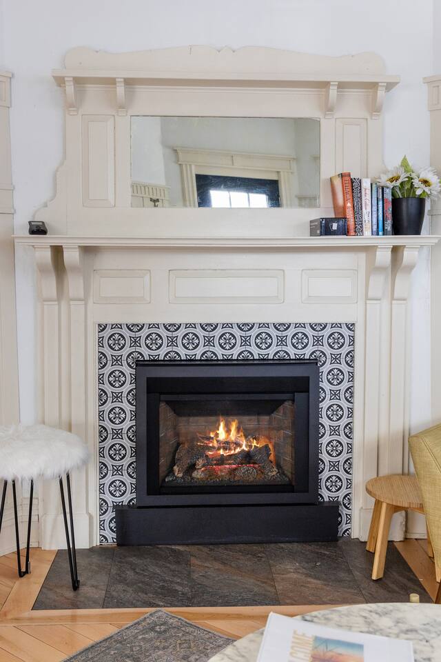 Totally new modern little apartment with a cozy gas fireplace, and all the amenities: Full kitchen, washer, dryer, dishwasher, super fast wifi, and convenient location to downtown or the lakefront. NESPRESSO coffee maker and coffee provided free. Walk or bike is just a few minutes to lakefront or Church Street Marketplace. One parking spot provided! 15%weekly stay discount 30%monthly!!