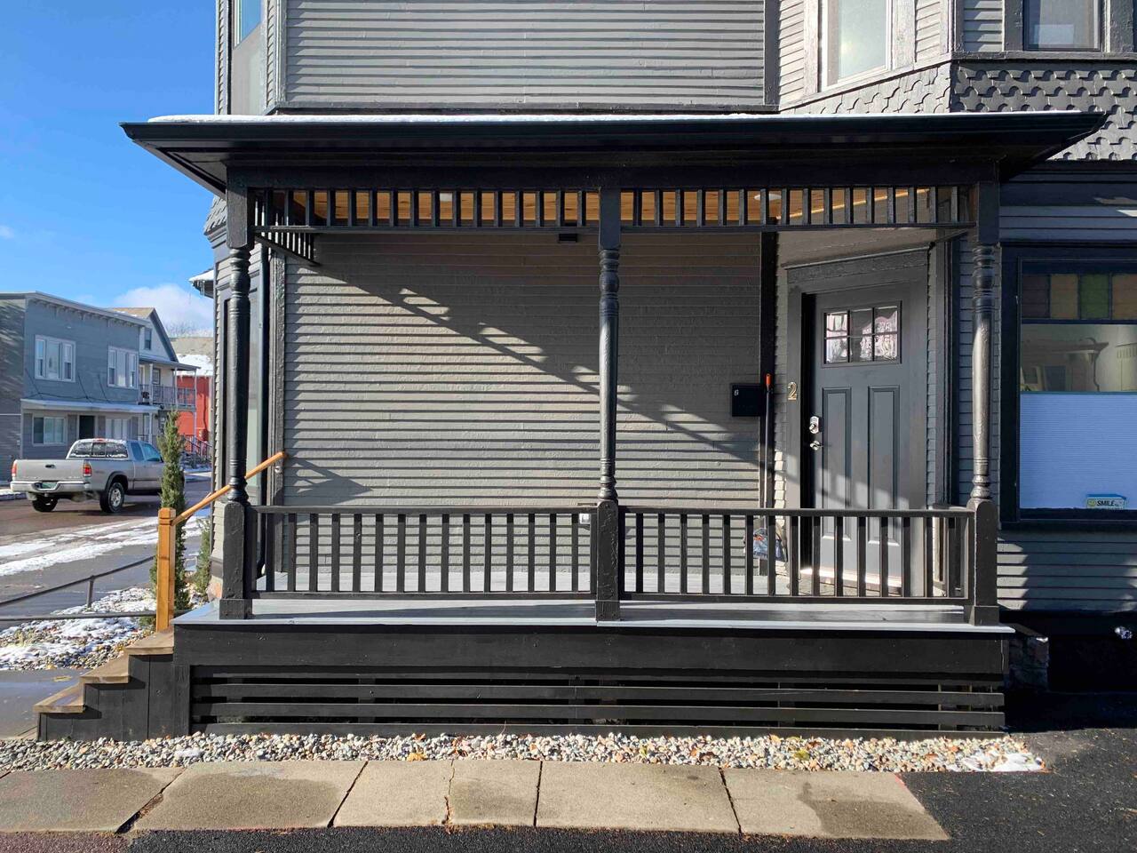 Punch code SELF check in with directions/ code emailed the day prior to check in, as well as the parking map and other check in details. Parking is directly outside the unit entry right off north street - If guests have multiple cars there is street parking as well.