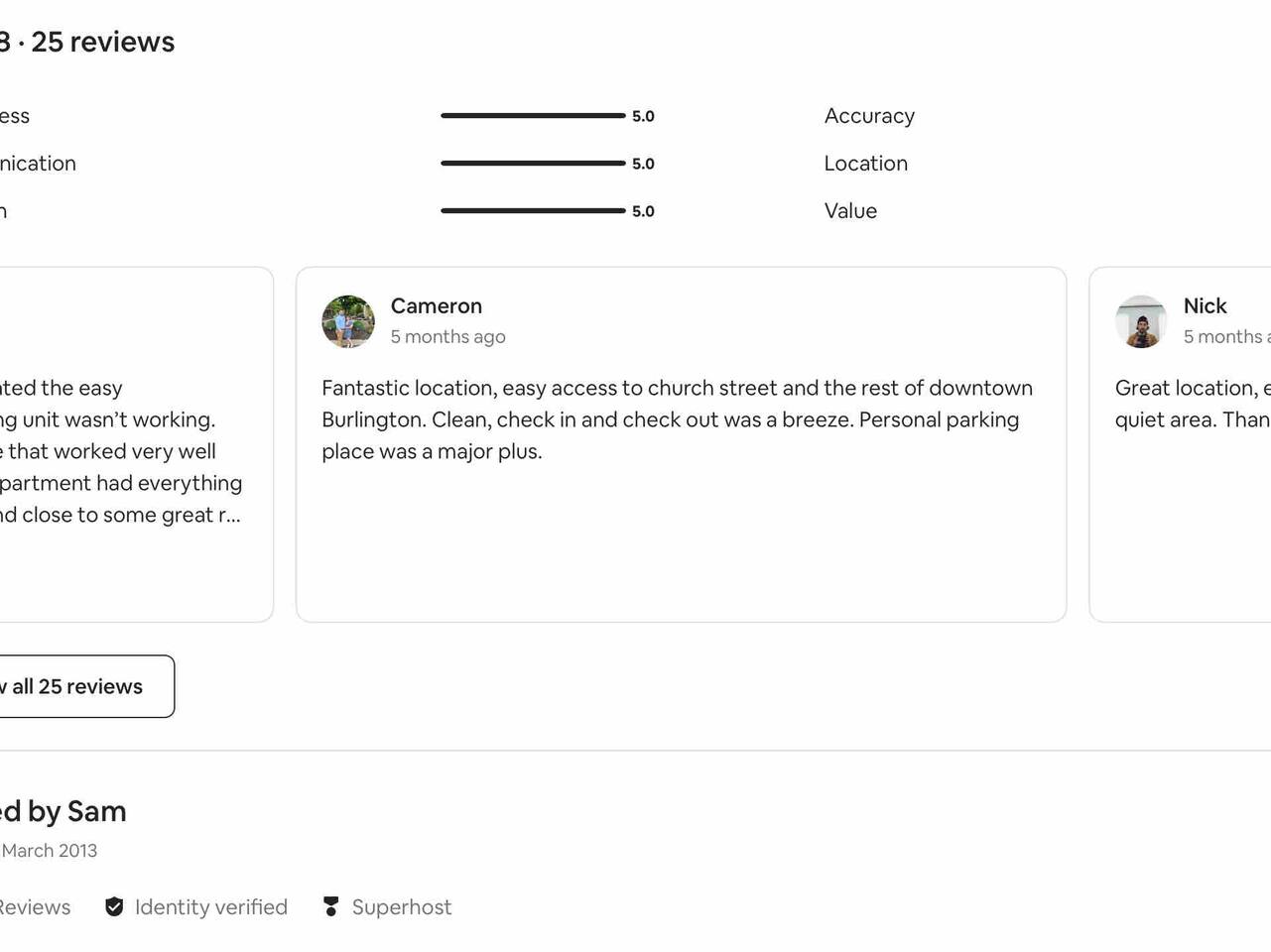 We have had a number of repeat guests who like having an easy little apartment in downtown Burlington with a convenient parking spot. A few guests in the past have complained about the tight entry steps to the apartment. As a note.